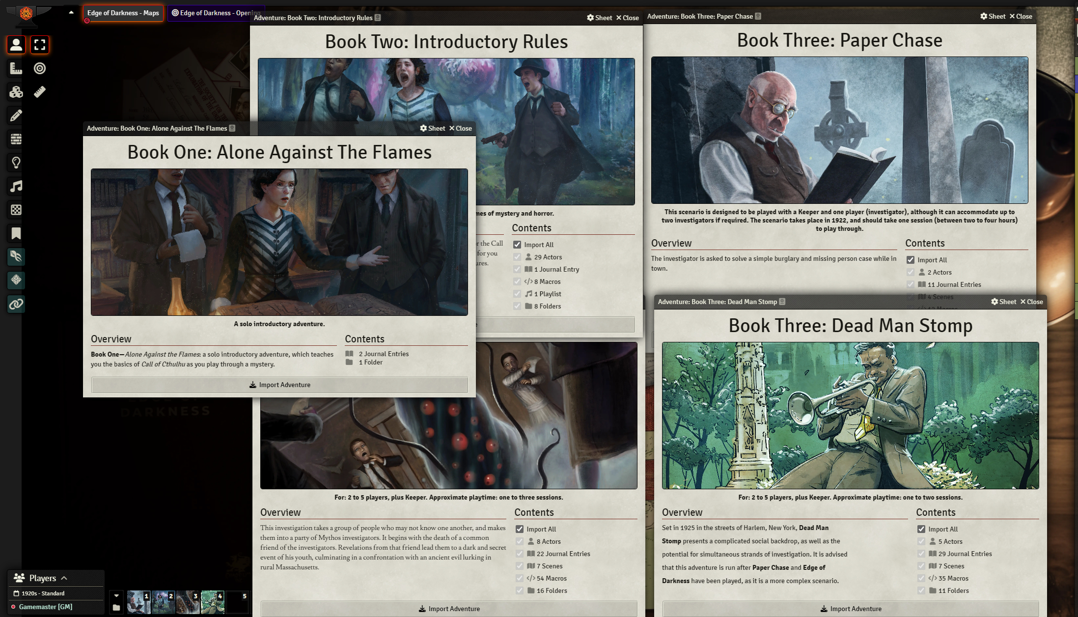 Chaosium Canvas, conçue spécialement pour Foundry VTT ! L’interface intuitive en *point-and-click* permet aux joueurs d’examiner les indices et de partager leurs actions en temps réel, éliminant ainsi le besoin de microgestion par le Gardien. Tes joueurs peuvent se concentrer sur les indices dont ils ont besoin, quand ils le souhaitent, te permettant de te concentrer sur l’animation du jeu.