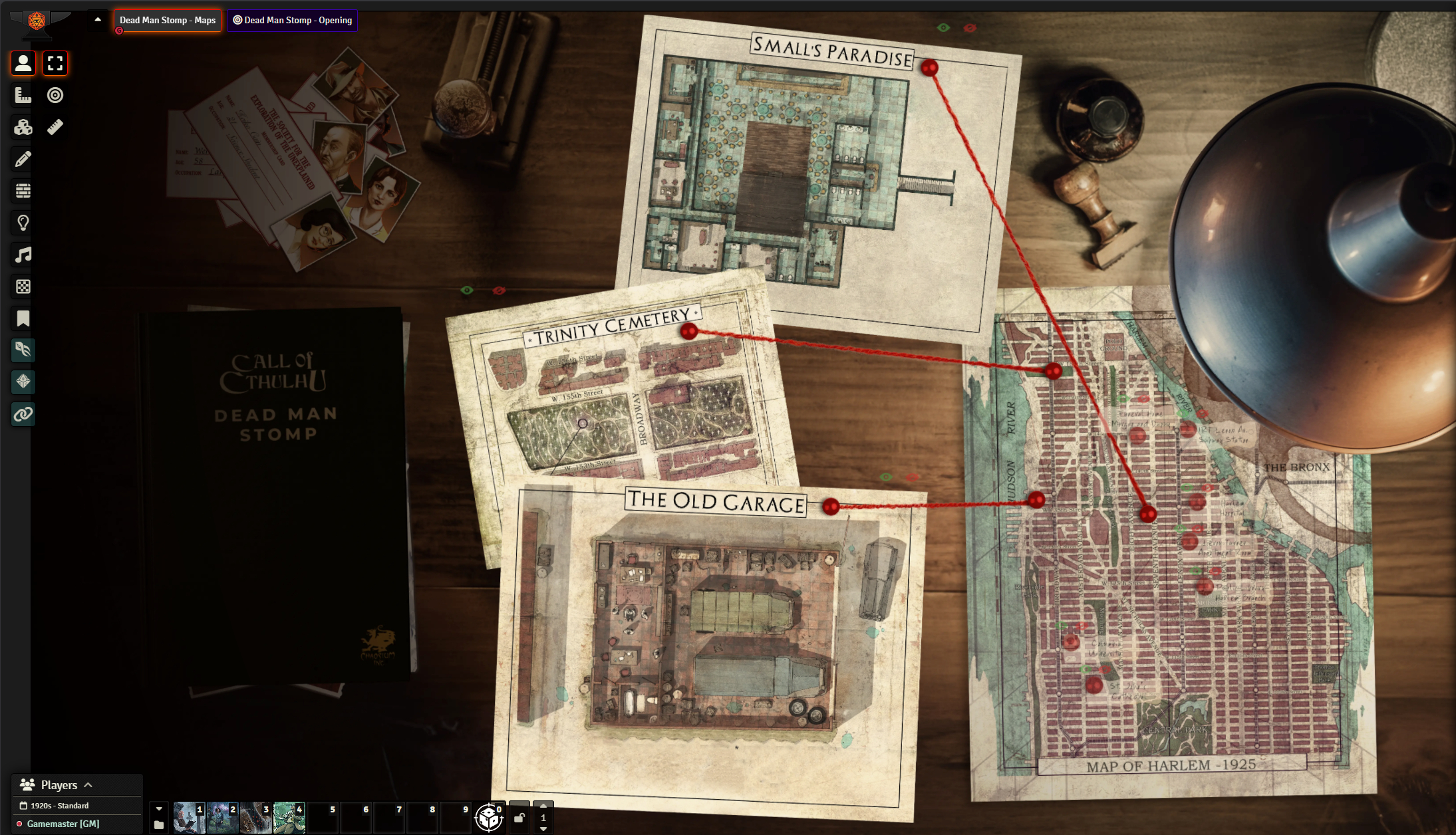 « Le Bal des Morts » (2-5 Enquêteurs + Gardien) : Harlem et le jazz servent de décor aux sombres machinations d’une divinité extraterrestre.