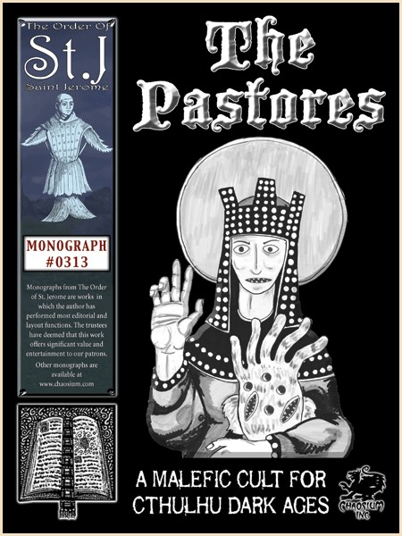 The first part of this book describes the Pastores in detail — their beliefs, their practices, and the resources, allies, and leaders with which they threaten the health of the realm and any investigators unfortunate enough to encounter them. It includes advice on how to incorporate and utilize them to best effect in a new or ongoing Cthulhu Dark Ages campaign. The second part of the book contains scenarios featuring the Pastores. Together, they constitute a loosely connected campaign.