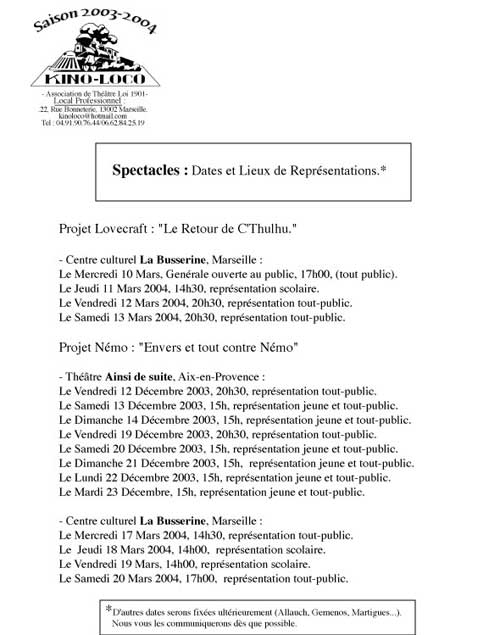 La compagnie "Scène en Vie" est heureuse de présenter sa dernière création professionnelle: L'appel de CTHULHU d'H.P. Lovecraft